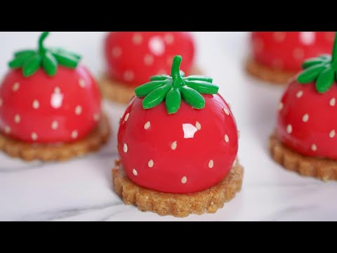 안녕하세요. 분 베이크입니다. 오늘은 딸기를 주재료로 아름다운 미니 딸기 케이크를 만들어 봤어요. ???????? 딸기 케이크라서 딸기 모양으로 만들어 줬더니 너무 앙증맞고 귀여웠어요. 실제로 본다면 누구라도 반할 비주얼입니다. 딸기 잎을 표현하기 위해서 모델링 초콜릿을 이용했는데요. 플라스틱 초콜릿으로도 불리는 모델링 초콜릿은 재료도 간단하고 만들기도 쉬워요. 다만 다크 초콜릿으로 만드는 모델링 초콜릿과 텍스춰가 많이 달라서 영상으로 자세히 남겨 봤으니 자세히 시청해 주세요. 화이트 초콜릿으로 만드는 모델링 초콜릿은 카카오 버터 함량이 높아서 카카오 버터를 잘 없애야만 됩니다. 하루 정도 실온에 보관했다가 사용하거나 냉장고에 몇 시간 넣어 두었다가 사용하기도 합니다. 날씨가 더울 땐 사용 전에 냉장고에 넣어 두면 좋구요. 딸기 크림은 티라미수에서 좀 응용을 해 봤는데요. 너무 맛있어서 아주 대만족입니다. ???? 맛있는 딸기 케이크를 12개나 만들었더니 보기만 하도 아주 흐뭇합니다. 모양도 예쁘고 맛도 좋은 딸기 케이크~~ 재밌게 시청해 주세요. 맛있는 딸기 무스 케이크 ~! 미니 딸기 케이크 ~???? 딸기 모양 그대로 ~~???? 아름다운 케이크~! 만드는 방법~~! 체크 포인트~~! 자, 그럼.. 시작해볼까요~~ #ASMR #Strawberrycake #minicake #Amazingcake ● Cup measure standard 237ml = 1컵 15ml = 1Tbsp 5ml= 1tsp 달걀 한 개 (껍질 제외) 53g 헤비 크림 (유지방 38%) ( 초콜릿은 다진 상태, 밀가루는 체 치기 전 상태입니다 ) ● 케이크 완성 사이즈 ( 지름 4.5cm 구모양 * 12개 ) ● 딸기 인서트 젤리 물 45g 설탕 15g 레몬즙 1tsp 가루 젤라틴 3g 물 15g 딸기 퓨레 70g 식용 색소 (선택) ● 모델링 초콜릿 (플라스틱 초콜릿) 화이트 초콜릿 100g (커버춰) 물엿 33g 지용성 식용 색소 (만약 수용성 식용 색소를 사용할 때엔 물엿에 섞어 주세요.) ● 딸기 티라미수 무스 크림 (몰드 사이즈 : 4.5cm, 구 모양, 12개) 노른자 2 설탕 25g 물 25g 화이트 초콜릿 85g 딸기 퓨레 55g 라즈베리 퓨레 25g 가루 젤라틴 6g 물 30g 생크림 180g 마스카포네 125g ● 타르트 대용 쿠키 (몰드 사이즈 : 5.5cm(sphere) *12개 ) https://youtu.be/7xRlqF2sCZI 그레이엄 쿠키 127g 설탕 10g 무염 버터 70g ● 반짝이는 초콜릿 미러 글레이즈 https://youtu.be/__s2MYPAuWY 물 50g ( 3 Tbsp + 1 tsp ) 설탕 100g ( 1/2 컵 ) 물엿 100g ( 1/4 컵 + 2 tsp ) 가당 연유 65g ( 4 Tbsp + 1 tsp ) 젤라틴 7g ( 1 Tbsp ) 화이트 초콜릿 100g ( 2/3 컵 ) 식용 색소 시청해주셔서 감사합니다. **BGM-- ????Music provided by 브금대통령 ????Track : https://www.youtube.com/watch?v=B-zojrh6vAQ&t=0s ● 분 베이크 인스타그램 바로가기 https://www.instagram.com/boone_bake