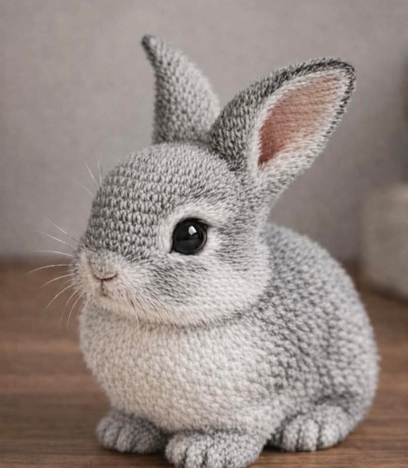 Realistic Fluffy Bunny Amigurumi Pattern Required Materials Yarn: Fine weight yarn in grey and white tones. Choose a brushable type (mohair blend or 100% acrylic). Crochet Hook: Suitable for your yarn (usually 2.0mm - 2.5mm). Eyes: 12-14 mm black safety eyes. Other: Fiberfill stuffing, wire (optional for ears), wool brush (or Velcro strip), and pink pastel chalk (for ear detailing). Abbreviations (US Terms) MR: Magic Ring sc (X): Single crochet inc (V): Increase (2 sc in one stitch) dec (A): Decrease (sc 2 together) st(s): Stitch(es) 1. Head and Body (Worked as one piece) Head: MR: 6 sc (6) inc in each st: (12) (1 sc, 1 inc) * 6: (18) (2 sc, 1 inc) * 6: (24) (3 sc, 1 inc) * 6: (30) (4 sc, 1 inc) * 6: (36) (5 sc, 1 inc) * 6: (42) 8-15. sc in each st: (8 rounds) (42) Place safety eyes between rounds 11 and 12, with 8-10 stitches apart. (5 sc, 1 dec) * 6: (36) (4 sc, 1 dec) * 6: (30) – Transition to the body starts here.