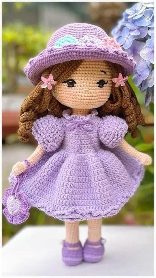 Arm (Skin color ) x 2 Rnd 1: 5sc into the magic ring Rnd 2: (inc)x5 (10) Rnd 3-5: 10sc Rnd 6: dec, 6sc, dec (8) Rnd 7-17: 8sc With blue color Rnd 18. Work FLO inc around (16) Rnd 19-20: 16sc Rnd 21: Dec around (8) Rnd 22: (dec)x4 (4) Fasten off. Place the security eyes between round 60-61 with a distance of 7 stitches between them. Leave a long tail after finishing crocheting the arms. Stuff them firmly and sew them to the body by closing the holes. Sew the arms on the body where the neck section begins. Do NOT forget to sew them by hiding the color changes. Hair (Yellow) Cut length of 40cm strands(pieces of yarn). We will place them one by one round the stitches of round 69 where we have crocheted with yellow. Follow the pictorial below! Begin from the front middle of the head. Pull the strands with the help of your hook.(Divide hair from the middle to the left and right.) Fold the pieces of yarn in half so they will be equal in length. After you finish adding hair,take strands of hair from left and right side make a knot on the back with a piece of yellowyarn. You can twist them before making a knot. Use your scissors to make them equal in length. Hair Band (Black) Make the first chain leaving a long tail, we will sew it on the hair with the help of long tails. Rnd1:Ch 22 Rnd2:1sc, 19hdc, 3x on the last stitch, do NOT turn crochet on the other side of the chain. Rnd3: 19hdc, 1sc Bow (Black) Rnd1:Ch17 Rnd2: 1sc, 1 hdc, 3 dc, 1 hdc, 1sc, 2 sl-st, 1sc, 1hdc, 3 dc, 1 hdc, 3sc into the last stitch, DO NOT turn crochet on the other side of the chain. Rnd3: 1sc, 1 hdc, 3 dc, 1 hdc, 1sc, 2 sl-st, 1sc, 1hdc, 3 dc, 1 hdc, 1sc ..Fasten off. Sew the bow in to the middle of the hair band. Place the hair band with the help of long tails as in the pictures and sew it. Sew them in side the hair on the head.