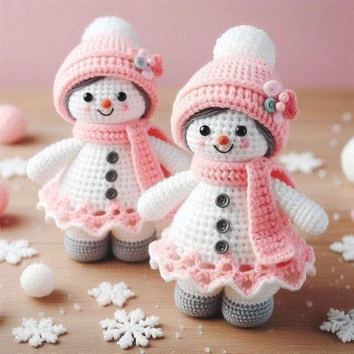 abbreviations ( dec ) decrease ( MR ) magic ring ( sc ) single crochet ( m ) stitch ( inc ) increase ( ch ) chain stitch ( fo ) finish crocheting ( sl st / sl st ) slip stitch ( BLO ) back loop only ( hdc ) half double crochet cast on ( dc ) double crochet head and body R 1 : 6 dc in MR (6) R 2 : 6 inc (12) R 3 : (inc, 1 dc)x6 (18) R 4 : (inc, 2 dc)x6 (24) R 5 : (inc, 3 dc)x6 (30) R 6 : (inc, 4 dc)x6 (36) R 7 : (inc, 5 dc)x6 (42) R 8-13 : 42 dc (6 rows) R 14 : (dec, 5 dc)x6 (36) R 15 : (dec, 4 dc)x6 (30) R 16 : (dec, 3 dc)x6 (24) R 17 : (dec, 1 dc)x6 (18) R 18 : 18 dc row 19 : (inc, 2 dc)x6 (24) R 20 : (inc, 3 dc)x6 (30) R 21 : (inc, 4 dc)x6 (36) R 22 : (inc, 5 dc)x6 (42 ) R 23 : (inc, 6 dc)x6 (48) R 24-31 : 48 dc (8 rows) R 32 : 48 hdc R 33 : BLO:(dec, 6 dc)x6 (42) R 34-35 : 42 dc (2 rows) R 36 : (dec, 5 dc)x6 (36) R 37 : 36 dc R 38 : (dec, 4 dc)x6 (30) R 39 : (dec, 3 dc)x6 (24) R 40 : (dec, 2 dc)x6 (18) R 41 : (dec, 1 dc)x6 (12) R 42 : 6 dec (6) Fo hat R 1 : 6 dc in MR (6) R 2 : 6 inc (12) R 3 : (inc, 1 dc)x6 (18) R 4 : (inc, 2 dc)x6 (24) R 5 : (inc, 3 dc)x6 (30) R 6 : (inc, 4 dc)x6 (36) R 7 : (inc, 5 dc)x6 (42) R 8-13 : 42 dc (6 rows) R 14 : (dec, 5 dc)x6 (36) FoMake a pom pom out of yarn and sew it onto the hat. Sew the hat onto the head. Embroider eyes and arms.Make 51 ch. From the 2nd ch from the hook: 50 sc, turn: 50 sc on the other side. Make a sl st, 3 ch in every 2nd st across. rock Hold the snowman upside down. Go to R 33: 3 dc in each st until end of row.