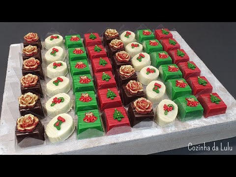 Me sigam também no: Facebook: Cozinha da Lulu https://bit.ly/3yreOwj https://www.instagram.com/cozinhadaluluoficial/ ✳Curso Doces Finos de Luxo: https://go.hotmart.com/Y51771491D ✳Curso Doces Finos para Iniciante: https://go.hotmart.com/R47800472N ✳E-book: Massas - Recheios e Coberturas : https://go.hotmart.com/W57598185N? ✔ @Cozinha da Lulu. Para não perder mais nenhum vídeo, ative a sino das notificações ???? e se gostou do vídeo, não esqueça de COMPARTILHAR, é muito importante para o desenvolvimento do canal! Assista também: ✳https://www.youtube.com/watch?v=u8xRFVY9qME&t=5s ✳https://www.youtube.com/watch?v=O7DGqYCv1Sw ✳https://www.youtube.com/watch?v=CK_Yytfr1hY ✳https://www.youtube.com/watch?v=v4_LogChpyQ Ingredientes: Recheios Creme base 1 lata de leite condensado ou 395g 200 ml de leite 1 pitada de sal Creme de chocolate 1 lata de leite condensado ou 350 g 300 ml de leite 5 colheres de sopa de cacau em pó ou chocolate em pó 50% cacau 150 g de chocolate margo Amarula ganache 200 g de chocolate ao leite 50 ml de leite 100 ml de Amarula 500 g de chocolate branco 200 g de chocolate amargo Corante comestível próprio para chocolate nas cores desejada Pasta de açúcar: https://youtu.be/uMtN4bAKfaQ Geleias Maracujá: https://youtu.be/0AjFNqrUvRM Morango:https://youtu.be/4ngrHKx9X-M Molde de silicone. https://s.click.aliexpress.com/e/_DetGiyj https://s.click.aliexpress.com/e/_DCYYVfz Molde silicone para fazer chocolate: https://s.click.aliexpress.com/e/_DmorS2X Forma para fazer os chocolates Molde de silicone: https://s.click.aliexpress.com/e/_A3kNx3 https://www.lojaspalheta.com.br/produto/forma-pvc-4017-quadrado-33x33x16.html https://www.rizzoconfeitaria.com.br/forma-especial-mini-caixa-quadrada-bwb-rizzo-confeitaria Forma de PVC No 8034 Crystal Forming Forma de PVC No 4018 Crystal Forming Corante vermelho para chocolate: https://s.click.aliexpress.com/e/_Dn1aOmB Corante verde para chocolate: https://pt.aliexpress.com/item/1005004605244742.html?spm=a2g0o.order_detail.0.0.19c04c7ft8vyq6&gatewayAdapt=glo2bra Corante verde cintilante: https://s.click.aliexpress.com/e/_DCRzsVV