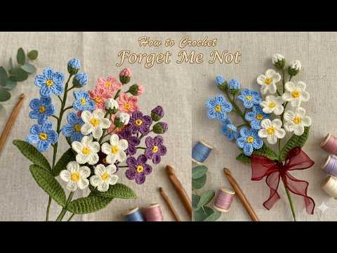 #crochetflower #forgetmenot #crochettutorial #crochetideas CROCHET FLOWER : Forget Me Not Crochet Flower Tutorial | Crochet Flower Bouquet ???????? | How to Crochet a Forget Me Not Flower | Crochet Forget Me Not Flower | Crochet for Valentine's Day | crochet forget me not flower pattern ???????????? 01:00 Flower 06:22 Flower Buds 1 : MR, 2ch, 8dc, slst 2 : (2dc cluster)*4, slst (correct) 10:29 Leaf 13:10 Bouquet ---------- Materials ???????? 1. Cotton Yarn 4ply size 2 mm. 2. Crochet Hook No.4 size 2.5 mm. 3. Scissors 4. Needle 5. Glue 6. Wire 1 mm. and 0.5 mm. Finished size: Height - cm. Width - cm. ---------- Watch more interesting videos ???????? : Crochet Sunflower Tutorial ???????? https://youtu.be/a3oWa0gecds Crochet Daisy Flower Tutorial ???????? https://youtu.be/ofm_bbndoz8 Crochet Rose Flower Tutorial ???????? https://youtu.be/P-9y9WI-c-c ---------- Crochet Symbol ???????? : mr = Magic ring ch = Chain sc = Single Crochet tr = Treble (triple) Crochet dc = Double Crochet dc cluster = Double Crochet Cluster hdc = Half Double Crochet3 sk = skip slst = Slip stitch Thank you for watching this Crochet Tutorial and hopefully it's helpful! Support my channel with your likes and comments. Thanks! ???????????????? ---------- ???????????? Date 2024-2-4-1