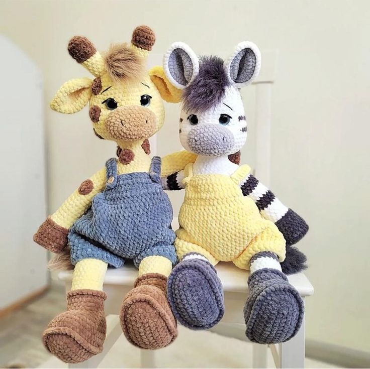 Materials – Himalaya DOLPHIN BABY or YarnArt Dolce yarn (100g/120m) 1 a skein of the main color (I used yellow for the boy and pink for a girl), 1\3 additional (brown), a little white for the muzzle – 4 buttons for attaching legs and handles – Hook number 4 – Filler (holofiber) – Safety eyelets (12mm-14mm) – Stitching needle, scissors, nylon thread or matching yarn for stitching parts – a little yarn for the nose, eyebrows and eyelashes – for a girl, a little yarn for a bow AbbreviationsMR: Magic ring Sc: Single crochet Inc: Increase Dec: Decrease Ch– chain Slst: Slip stitch. Pin Head We crochet with the main color, stuff as we crochet. Rnd 1. 6 sc in MR Rnd 2. 6inc =12sc Rnd 3 (1sc inc)*6 =18sc Rnd 4. (2sc.inc)*6 =24sc Rnd 5. (3sc.inc)*6 =30sc Rnd 6-10. 30sc (5 rows) insert eyes between 7 and 8 side by side (distance 3-4sc) Rnd 11. (3sc.dec)*6=24sc Rnd 12. (2sc.dec)*6=18sc Rnd 13. (sc.dec)*6=12sc Rnd 14. 6 dec= slst. Muzzle We crochet in white (I advise you to put a marker, to make the muzzle the desired shape) 5ch in the second from the hook we knit. Rnd 1. 3sc, 3sc in the last loop, 2sc in the other side, increase = 10sc Rnd 2. 2inc, 2sc, inc, inc, inc, 2sc, inc, inc= 16 Rnd 3. 16 sc + slst.Ears We crochet with the main color, do not stuff. Rnd 1. 4sc in MR Rnd 2. 4inc=8sc Rnd 3. (3 sc inc)*2 = 10sc Rnd 4. 10 sc Rnd 5. 10 sc Rnd 6. (3sc dec)*2=8 sc Rnd 7. 4dec =4sc +slst. Horns Crochet in brown. Rnd 1. 4sc in MR Rnd 2. 4sc Change thread to main color Rnd 3. (1sc inc)*2=6sc Rnd 4. 6sc Rnd 5. 6sc Rnd 6. (1sc.dec)*2= 4sc Stuff a little when sewing.