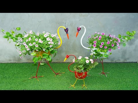 Great idea, make swan flower pot from recycled materials for the garde