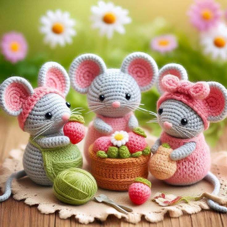 Arms (make 2) With pink yarn: R 1: 5 sc in magic ring [5] R 2-4: 5 sc (3 rows) Change to grey yarn: R 5: (1 sc, inc) repeat 2 times, 1 sc [7] R 6-10: 7 sc (5 rows) Fasten off. Tail With pink yarn: Make 15 ch. From the 2nd ch from hook: 5 sl st, 5 sc, 4 hdc. Fasten off.