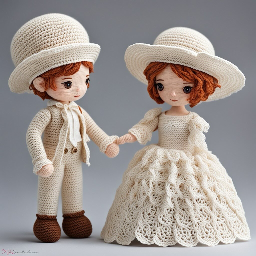 Amigurumi dolls on swings