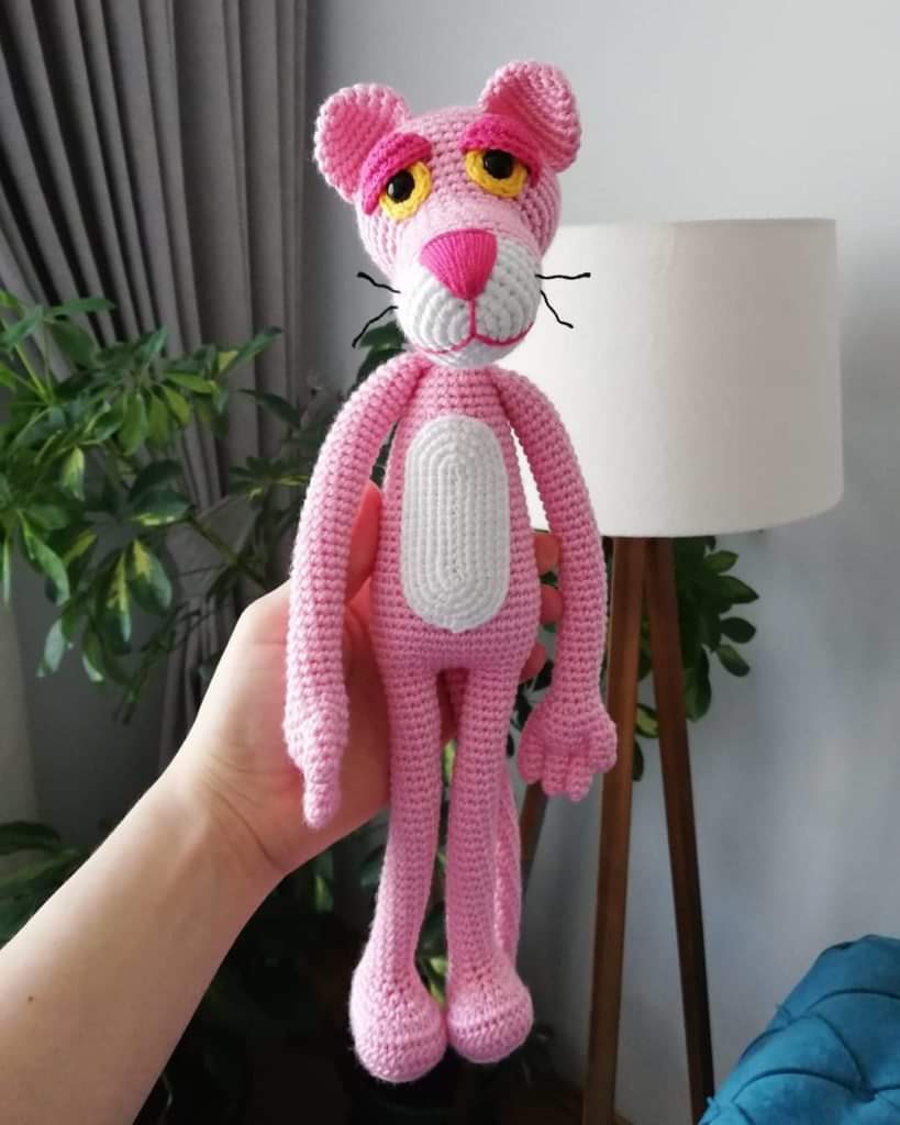e If you love the Pink Panther, you'll love this amigurumi pattern! You can crochet your own Pink Panther toy with this free pattern. The pattern is easy to follow and uses basic stitches. Have fun crocheting this cute and cuddly character!