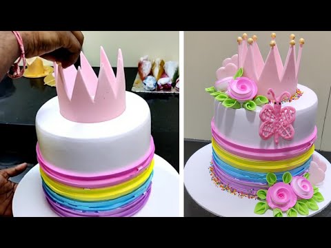 Princess Cake Tutorial | Princess Birth Day Cake | Crown Cake Design #mukeshcakemaster