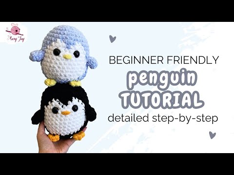 Let's make some penguins!!! *Please note that safety eyes can be choking hazards and are NOT recommended for crochet plushies made for young children, pets etc* For those who prefer it, here's the written pattern: https://www.themaryjay.com/free-patterns/pebble-the-penguin-crochet-pattern *Please do NOT duplicate, distribute, or sell the crochet pattern in this video without permission. However, you may gift, donate, or sell your finished pieces given that you give "The Mary Jay" credit for the pattern. Please link back to this video if you're selling online!* This Tutorial Covers: -Recommended Materials 0:28 *fabric scissors *yarn needle *stitch markers *polyester fiber fill *6.5 mm hook *#6 super bulky blanket yarn (in blue, white, and yellow OR the color of your choice) *18 mm safety eyes (*Safety eyes can be CHOKING HAZARDS. They are NOT recommended for plushies made for young children, pets etc*) You can find most of these items in a craft store or on my Amazon Storefront: https://www.amazon.com/shop/influencer-5d85fa54 My Amazon Storefront is an affiliate link, which means I will earn a small commission if you use it to make a purchase. This is one way that helps support me and lets me continue to make free content for you.The materials listed are actual materials that I have used.materials that I have used -How to Crochet the Body 1:10 -How to Crochet the Flippers 1:00:00 -How to Crochet the Feet 1:04:10 -Assembly (sewing on pieces) 1:05:50 While I go over all the stitches and skills in this tutorial, it's helpful to already be familiar with the following skills: -Magic Ring/Magic Circle -Single Crochet -Slip Stitch -Double Crochet -Increase -Invisible Decrease -Fasten Off -Crocheting in Front Loop Only and Back Loop -Chaining 1 -Changing Color If you need more help with some of these skills, here are some tutorials: - Slow Magic Circle Tutorial: https://www.youtube.com/watch?v=4PgvFNZdNjc -5 Must-know Amigurumi Skills (covers magic circle, single crochet, increase, invisible decrease, fasten off): https://www.youtube.com/watch?v=Zm6lTub09lM -Changing Color Tutorial: https://www.youtube.com/watch?v=u-S9314n4IY To keep the video from running too long, I tried to work at a decent pace, but please don't hesitate to pause or slow down the video under settings if needed. My links: Browse my Crochet Blog (includes free written patterns): https://themaryjay.com Find my Crochet Patterns: https://themaryjay.patternbyetsy.com/.. . Find my full shop: https://themaryjay.patternbyetsy.com I love seeing your creations! Tag my socials! Tik Tok: https://www.tiktok.com/@themaryjay Instagram: https://www.instagram.com/themaryjay/