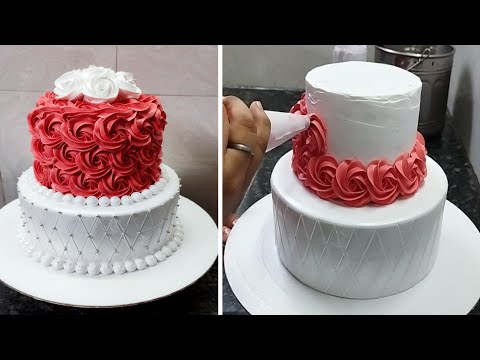 Two Tire #RedVelvetEngagementCake |Whipped Cream Rosette Cake |Engagement Cake Flowers Decorating
