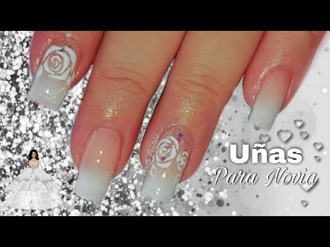 Uñas decoradas para novia con baby boomer / Diseño de uñas con blan