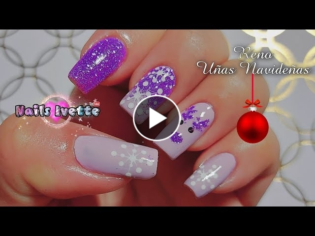 Uñas navideñas! Uñas reno / Uñas morado lila / Uñas copo de nieve / Uñas glitters