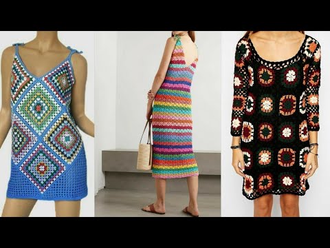 very charming & good looking crochet granny square sheath dresses