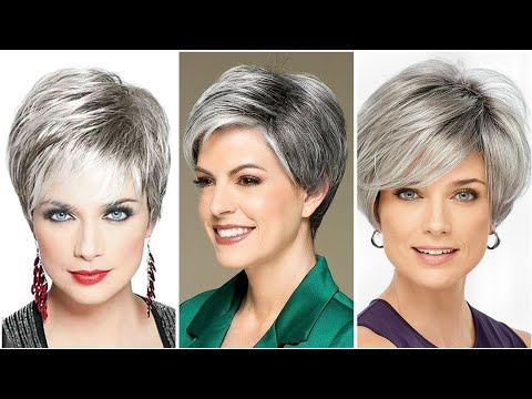 youngest & fabulous gray short haircut for 50's women short bang curtain layered hairstyle pixie cut